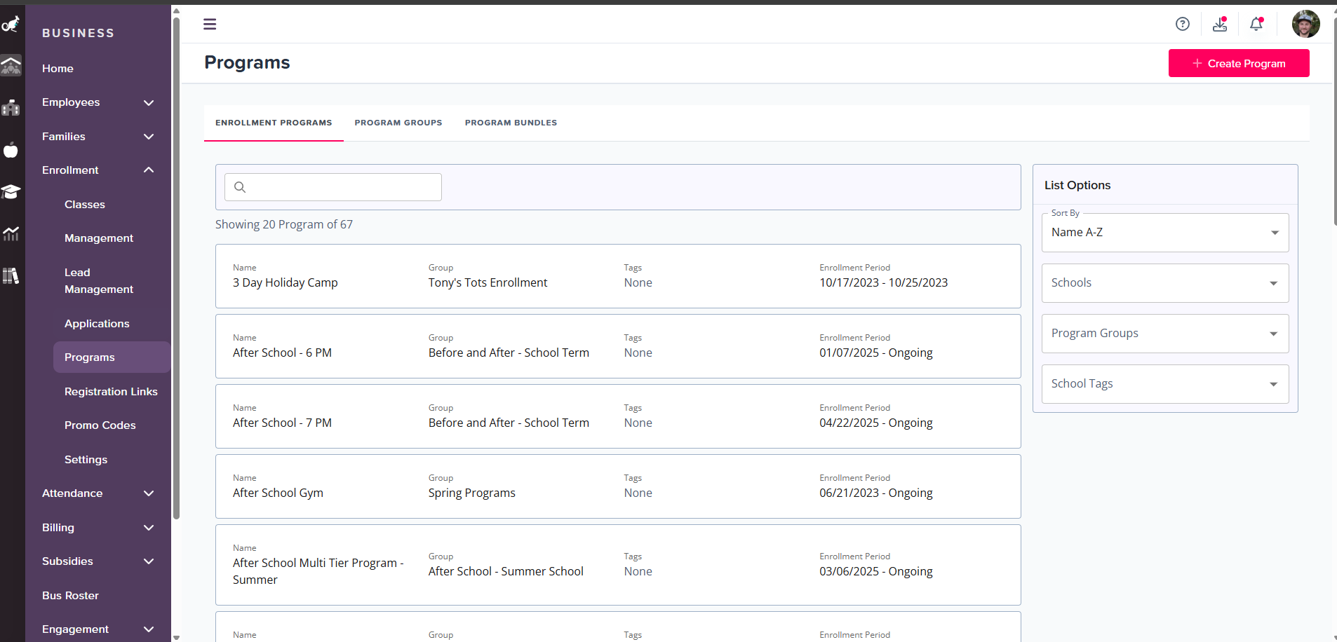 We’ve enhanced the Program List view to make managing your programs more intuitive and efficient. With new filtering options and program tagging, it’s now simpler to find, organize, and connect related programs across your centers.